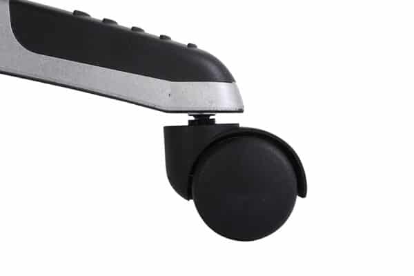 • Heavy duty powder coated base with dual wheel carpet casters