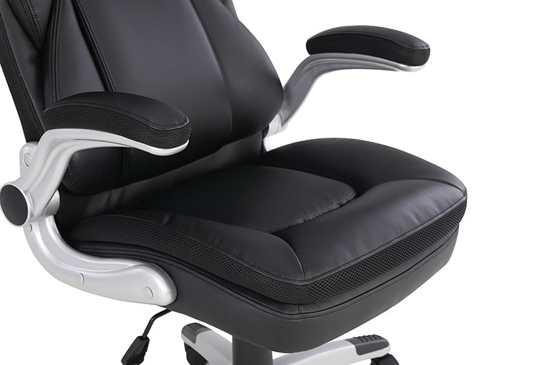 • Bonded leather seat and back with built-in lumbar support