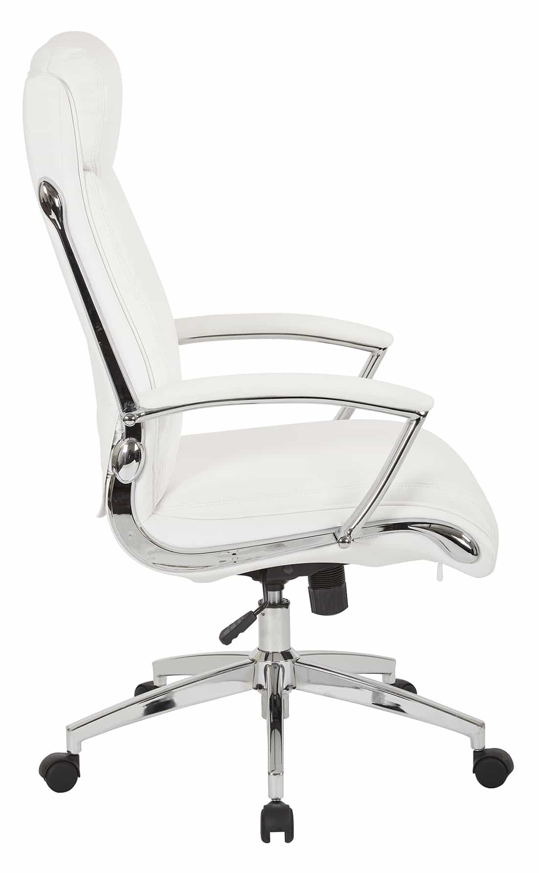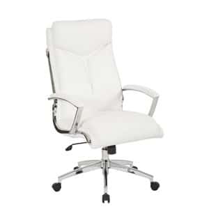 Luxuriously modern. Get head to toe support throughout the work day with this faux leather office chair designed for the modern workplace. Enjoy the comfort of a high back with built in lumbar support and a supportive head rest, along with padded armrests for a relaxed seating experience. The pneumatic seat height adjustment and tilt controls make it easy to customize this chair to your needs, while the chrome accents add a stylish flair. Maximize your productivity with the Work Smart Executive Chair.